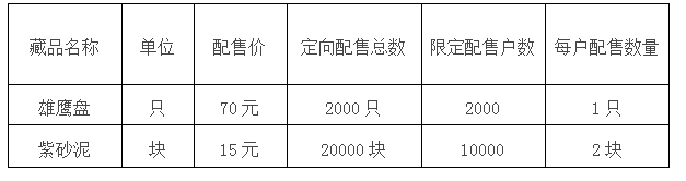 2、 根據(jù)投資人開戶的時間先后順序進行配售。1-2000名配售《雄鷹盤》,2001-12000名配售《紫砂泥》。