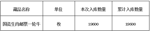 應(yīng)發(fā)行會員申請,《國瓷生肖郵票一輪牛》已經(jīng)于2016年11月26日至2016年11月28日辦理景德鎮(zhèn)陶瓷交易所托管中心入庫手續(xù),檢驗(yàn)簽證工作正在進(jìn)行。現(xiàn)將托管入庫結(jié)果公布如下:
