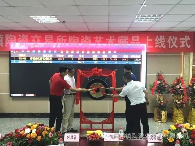 2016年9月26日,伴隨著一陣陣清脆的鑼聲,景德鎮(zhèn)陶瓷交易所在會(huì)展大廳隆重舉行了第四批藏品上線(xiàn)儀式。景德鎮(zhèn)陶瓷交易所員工及第四批藏品發(fā)行機(jī)構(gòu)南京茗清禮雅文化傳媒有限公司、浙江青龍藝術(shù)品有限公司相關(guān)負(fù)責(zé)人出席上線(xiàn)儀式,共同見(jiàn)證了陶交所這一激動(dòng)人心的重要時(shí)刻。