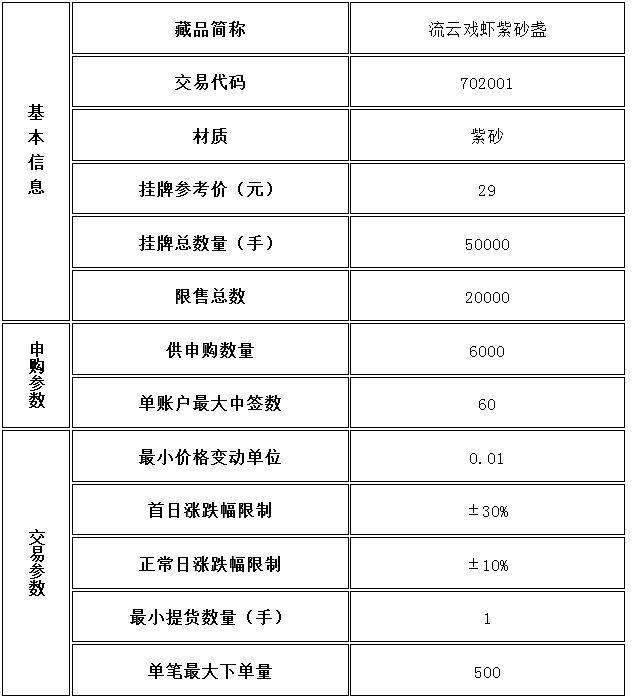 4、中簽公布日,本交易所將公布申購(gòu)當(dāng)日參與某一藏品申購(gòu)的所有交易會(huì)員的申購(gòu)數(shù)量,以及參與某一品種申購(gòu)的總資金量;