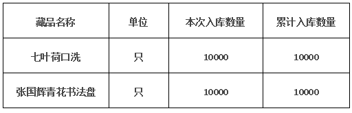 應(yīng)發(fā)行會(huì)員申請(qǐng),《七葉荷口洗》和《張國(guó)輝青花書法盤》已201733辦理景德鎮(zhèn)陶瓷交易所托管中心入庫(kù)手續(xù)。檢驗(yàn)工作已經(jīng)完成。現(xiàn)將托管結(jié)果公布如下: